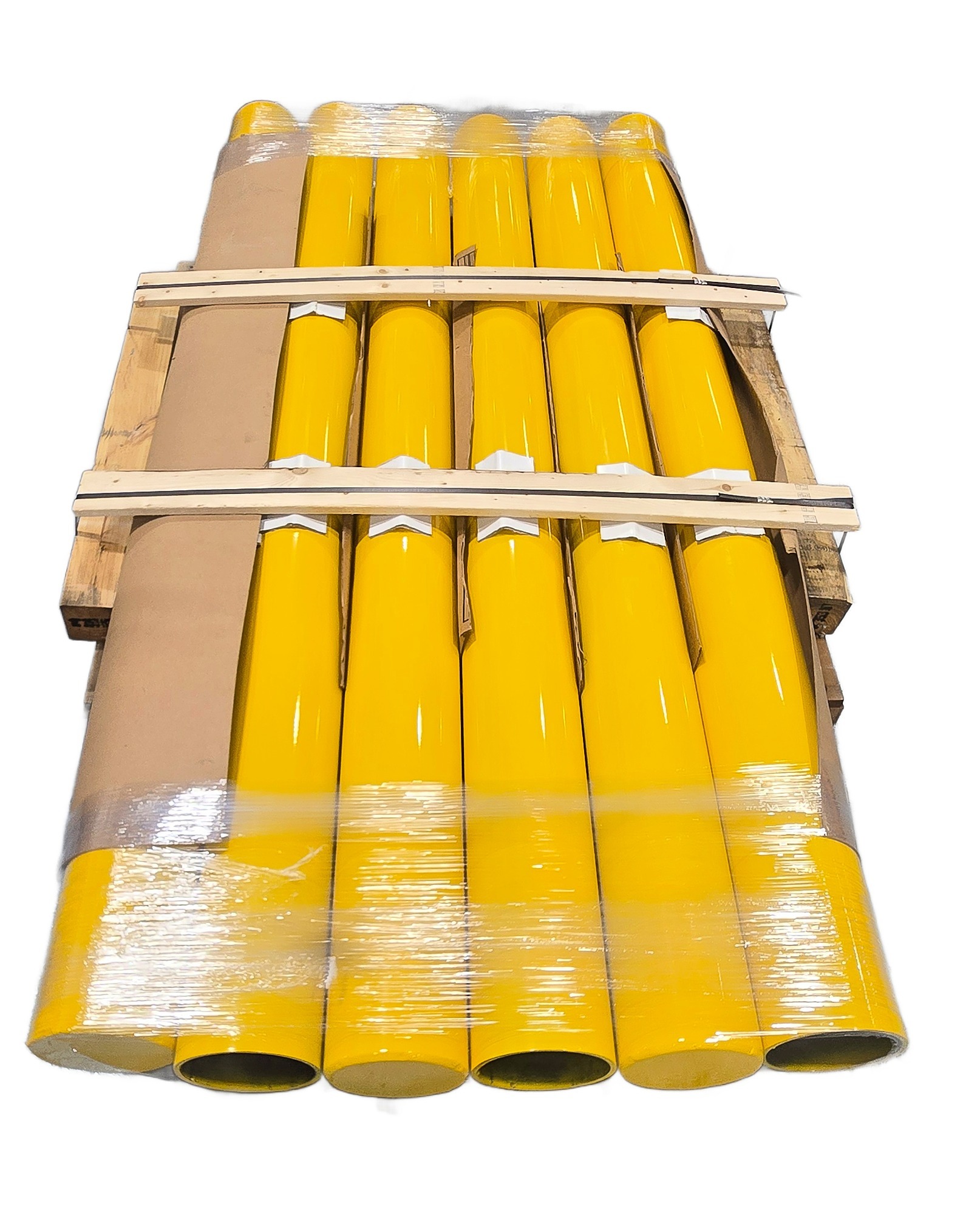 Custom Bollards with welded end daps and a polished and painted surface finish